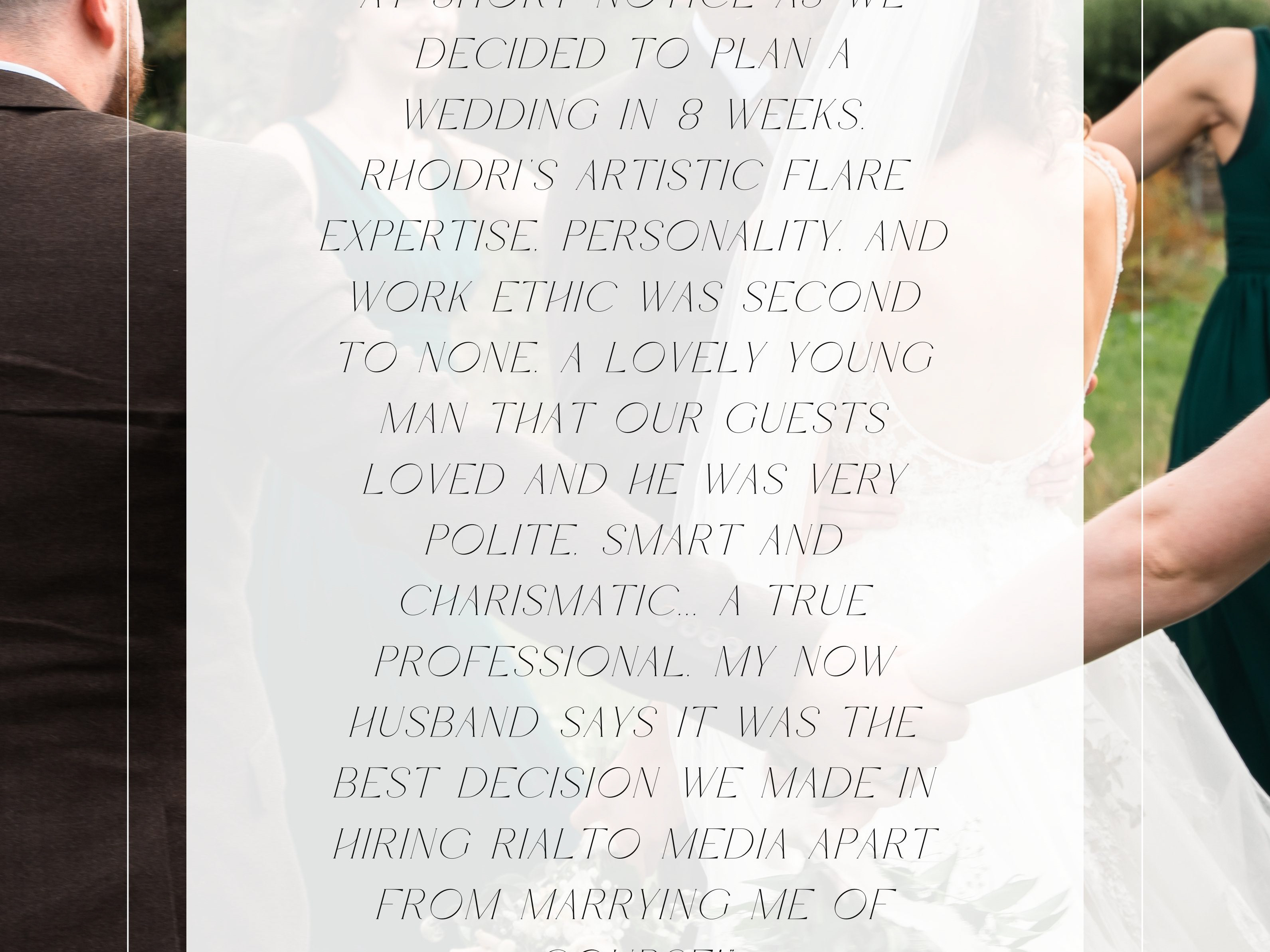 Weddings are close to Rhodri's heart, and that's why he named the company Rialto Media after proposing to his wife on the iconic Rialto Bridge in Venice. It's a tribute to the love and cherished memories weddings represent.